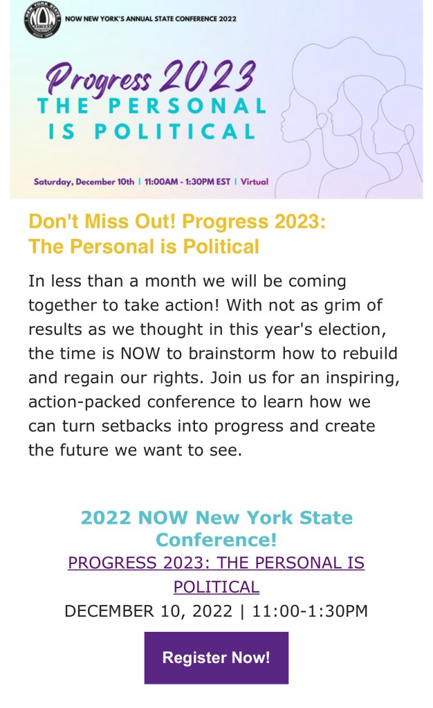 Posted on November 16, 2022March 6, 2024 by cnynowProgress 2023 The Personal is Political, December 10, 2022 Share this: Click to share on X (Opens in new window) X Click to share on Facebook (Opens in new window) Facebook Click to email a link to a friend (Opens in new window) Email Click to print (Opens in new window) Print Related