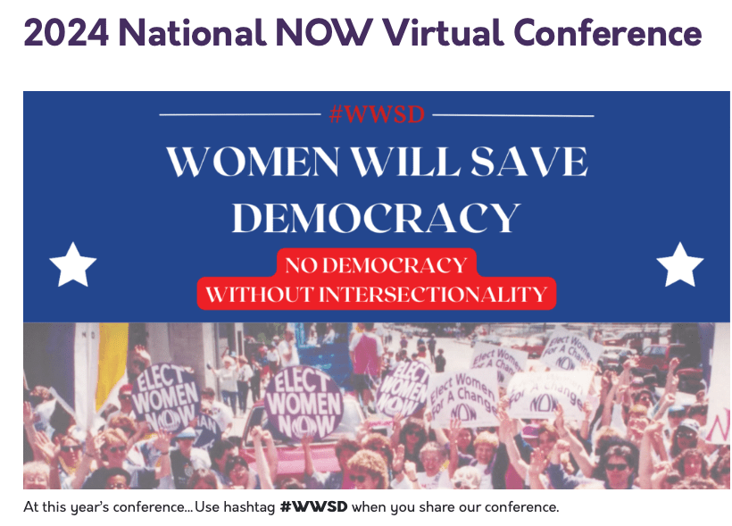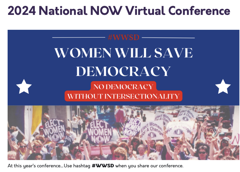 The National Organization for Women’s 2024 Conference, Women Will Save Democracy, No Democracy Without Intersectionality #WWSD will be held virtually from July 19th to July 21st. As always there will be an exciting and inspiring line-up of speakers and informative and action-oriented workshops. We will take up resolutions and by-laws on Sunday. This is also an election year for the National NOW Board, and you must register for the conference to vote in the Board elections.