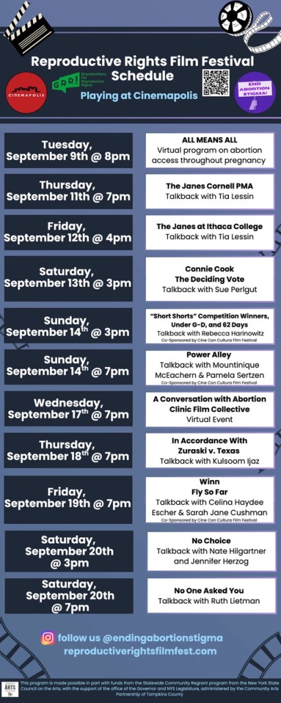 Posted on September 10, 2025September 10, 2025 by myrakovaryaf6cf238a6NYS’s only Reproductive Rights Film Festival in Ithaca, NY — Free at Cinemapolis SEPTEMBER 9th through SEPTEMBER 20th, 2025 Share this: Click to share on X (Opens in new window) X Click to share on Facebook (Opens in new window) Facebook Click to email a link to a friend (Opens in new window) Email Click to print (Opens in new window) Print Related